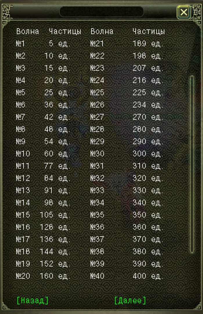 5–25 волна: каждые +5 волн → +5 монстров.