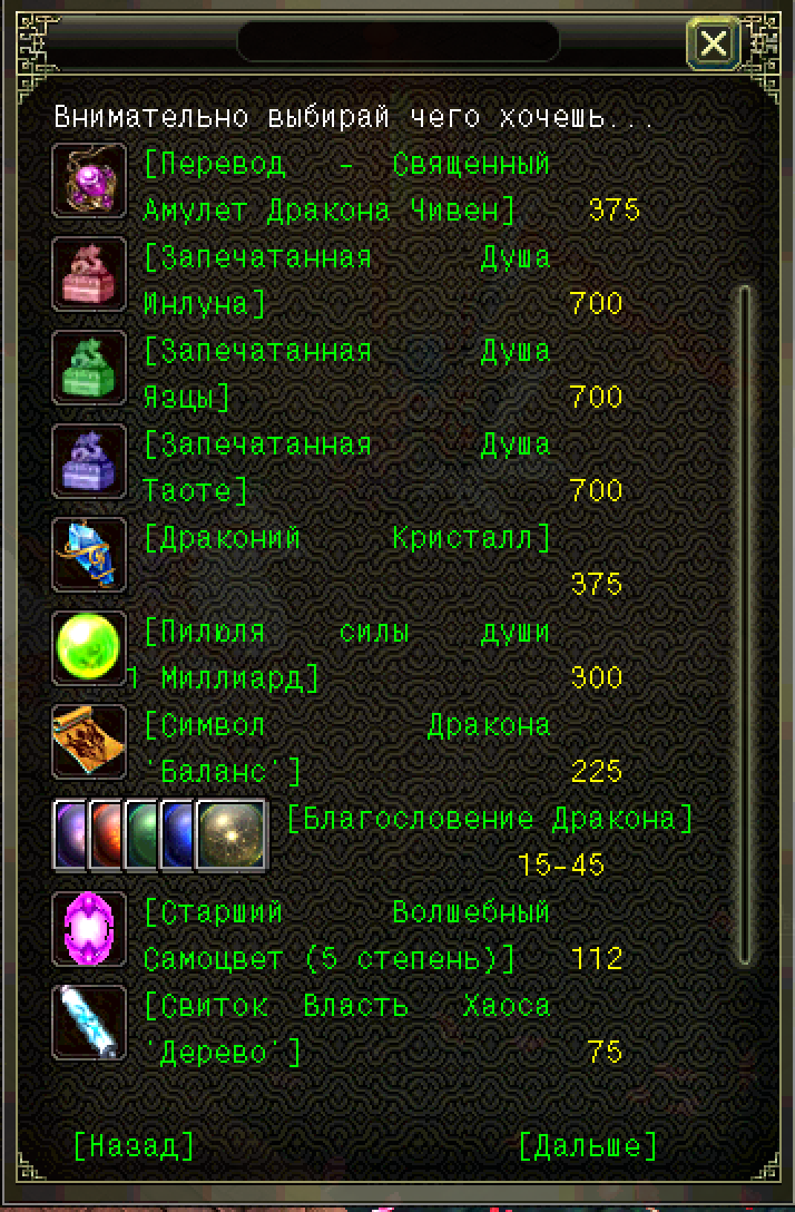 Перевод - Священный Амулет дракона Чивен - позволяет перевести ваш 141 Проклятый амулет в 150 Амулет Чивен. Точка и камни - сохраняются