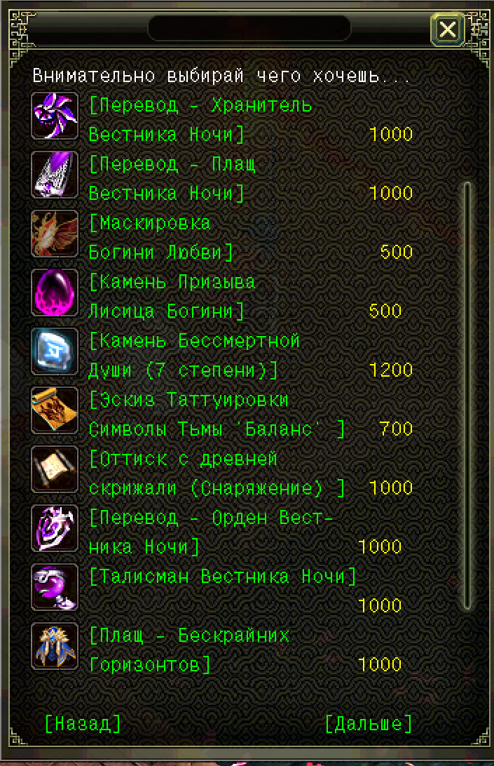Перевод Талисман и Плащ Вестника Ночи - Позволяет перевести Хранителя удачи и Плащ бескрайних горизонтов без затрат на ресурсы.