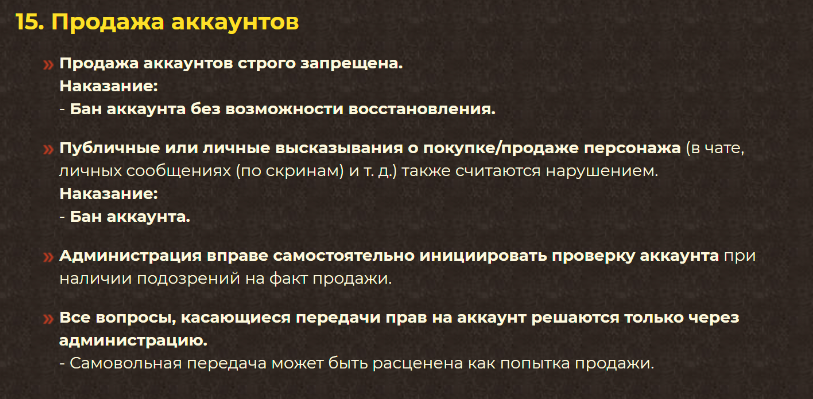 Ранее так-же существовал запрет на продажу, но он действовал только устно и не был зафиксирован в правилах.
